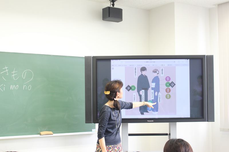 Các bạn còn được giảng viên của Đại học Quốc tế Kobe giới thiệu về các trang phục truyền thống của Nhật Bản, tìm hiểu sâu giá trị văn hóa và kỹ thuật mặc Yukata - một trang phục truyền thống của Nhật Bản vào mùa hè.