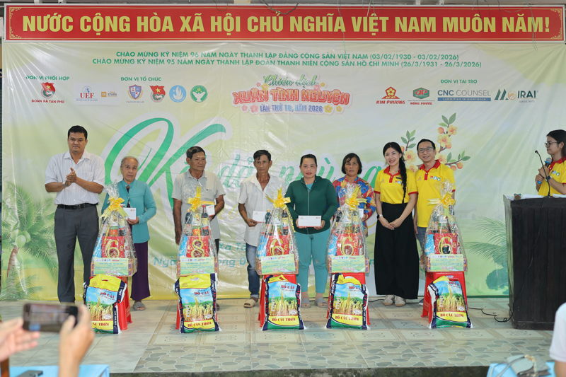 Khởi hành từ ngày 31/1 tại xã Tân Phú, tỉnh Vĩnh Long, các chiến sĩ Xuân tình nguyện Khoa Luật chính thức bước vào hành trình “Kết dải phù sa - Gieo hoa ngày Tết”. Tại đây, Ban Chỉ huy chiến dịch cùng các bạn sinh viên đã đến thăm hỏi, động viên và trao tặng những phần quà Tết đến các gia đình chính sách, hộ dân có hoàn cảnh khó khăn. Mỗi phần quà là sự gửi gắm tình cảm chân thành, góp phần mang đến một cái Tết ấm áp, đủ đầy hơn cho bà con nơi miền sông nước.