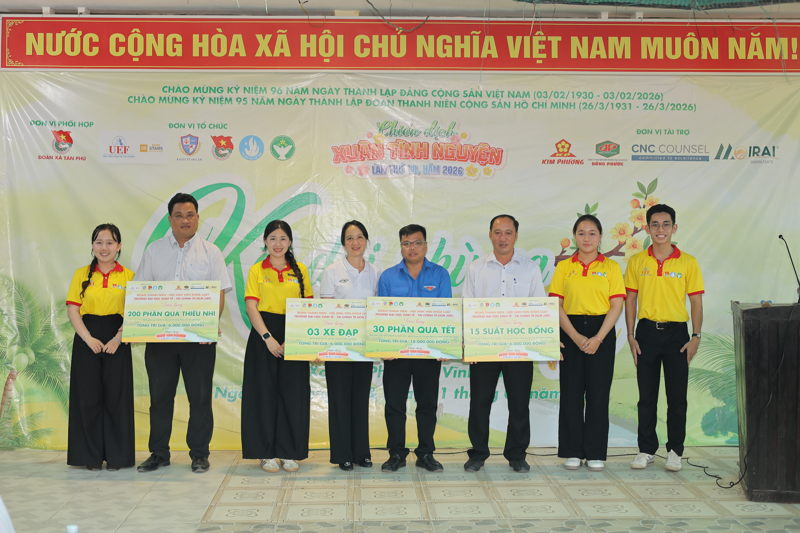Tiếp nối hành trình, nhiều hoạt động sôi nổi đã được triển khai nhằm lan tỏa niềm vui mùa xuân đến thế hệ thiếu nhi địa phương. Sân chơi “Vui xuân cùng thiếu nhi” được tổ chức tại Trường Tiểu học - Trung học cơ sở Nguyễn Văn Khá với chuỗi hoạt động giao lưu thể thao, trò chơi dân gian và văn nghệ đã tạo nên không khí gắn kết, rộn ràng. Song song đó, Gian hàng 0 đồng được mở ra, trao tặng quần áo và nhu yếu phẩm thiết thực cho bà con, thể hiện tinh thần tương thân tương ái và trách nhiệm xã hội của sinh viên UEF.