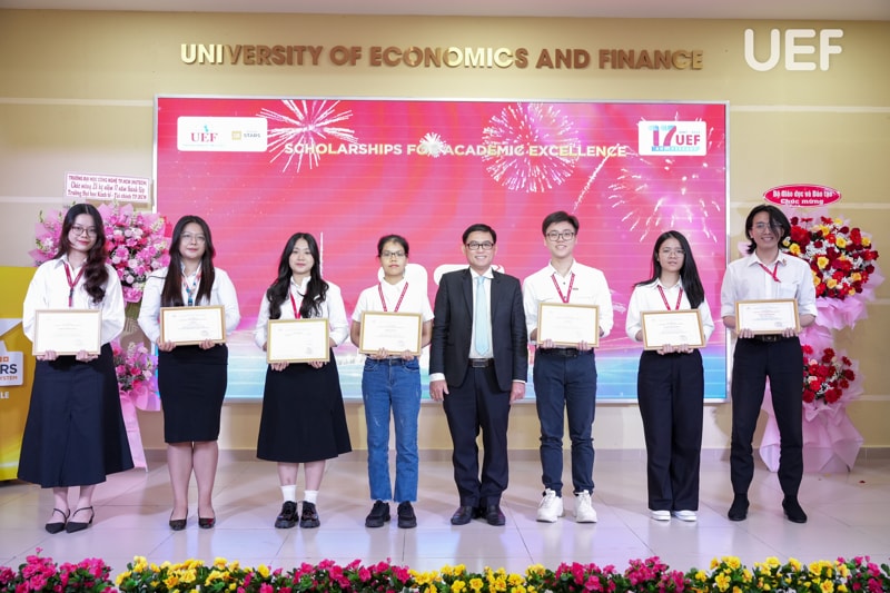 UEF trao học bổng 25%, 50% và 100% cho thí sinh dựa vào điểm xét tuyển học bạ, thi tốt nghiệp THPT, Đánh giá năng lực, hoặc IELTS từ 5.5 trở lên. Đặc biệt, chính sách học bổng này được duy trì có điều kiện trong suốt khóa học, giúp sinh viên yên tâm phát triển. Học bổng không chỉ giảm gánh nặng tài chính mà còn khuyến khích sinh viên phấn đấu trong cả học tập và rèn luyện.