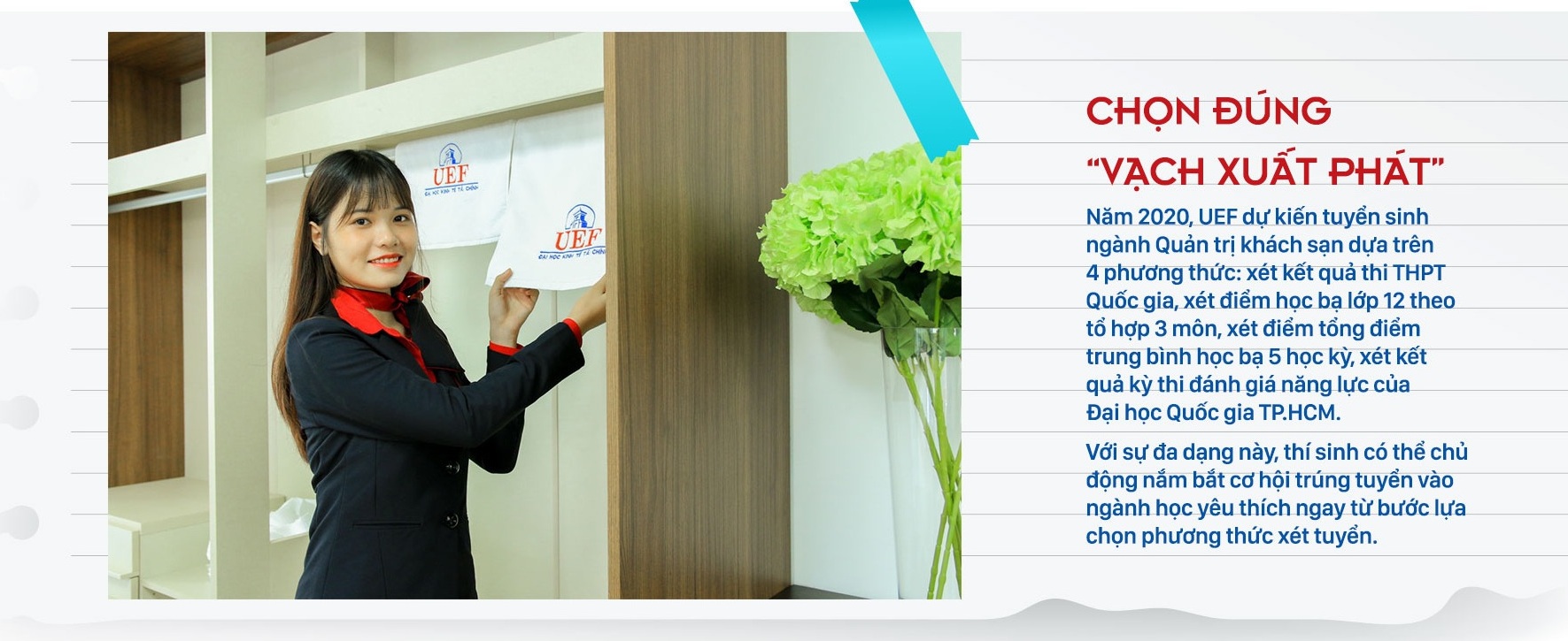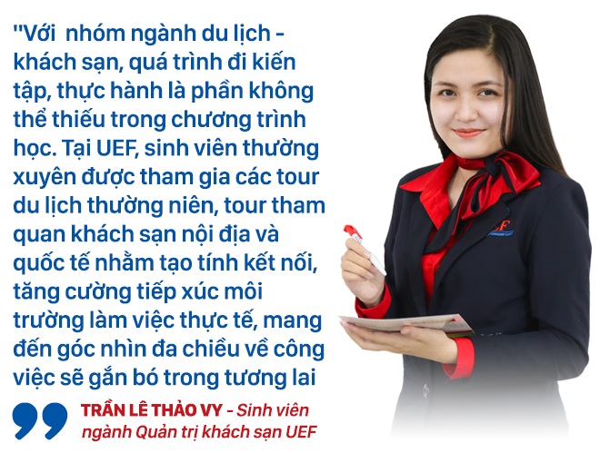 Tại UEF, sinh viên được học nghiệp vụ về khách sạn, tiếp cận mô hình đào tạo bám sát thực tế công việc, học giáo trình tiến bộ xây dựng từ những trường đại học có nền tảng và truyền thống về đào tạo khách sạn; cập nhật liên tục theo nhu cầu thực tế của doanh nghiệp.