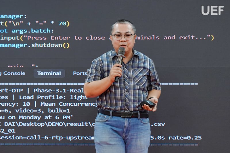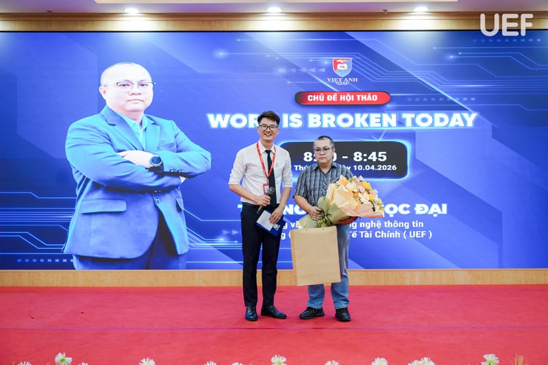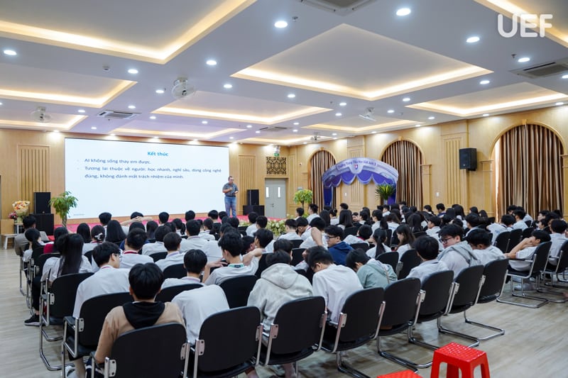 Nhằm giúp các bạn học sinh từng bước làm chủ AI trong thời đại công nghệ đang phát triển mạnh mẽ, với chuyên đề “Work is Broken Today”, ThS. Nguyễn Ngọc Đại - Giảng viên Khoa Công nghệ thông tin UEF đã mang đến cho các bạn học sinh góc nhìn gần gũi về trí tuệ nhân tạo. Thầy tập trung giới thiệu và chia sẻ đến các bạn học sinh nền tảng của AI, hướng dẫn học sinh cách tiếp cận lập trình và gợi mở phương pháp học tập thông minh, giúp các bạn từng bước hiểu cách biến AI thành công cụ hỗ trợ hiệu quả trong học tập.